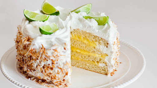 For toasted coconut: spread onto a baking sheet and bake in oven set to 400F for 5 minutes or until golden brown. Use hand to gently press coconut into meringue frosting on the sides of cake. Garnish with lime wedges. Alternatively, sprinkle coconut onto the entire cake.
