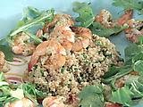 Transfer tabbouleh to a platter and top with the grilled shrimp. Garnish with fresh mint leaves.