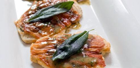 Pat cutlets dry with paper towels. Dredge chicken in flour, shaking off any excess. Lay cutlets flat and sprinkle evenly with minced sage. Place 1 prosciutto slice on top of each cutlet, pressing lightly to adhere; set aside.