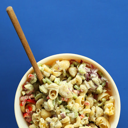 Toss drained noodles and veggies with the dressing in a large serving bowl. Chill for at least 1-2 hours before serving. The flavors will meld and the salad will thicken up the longer it chills.