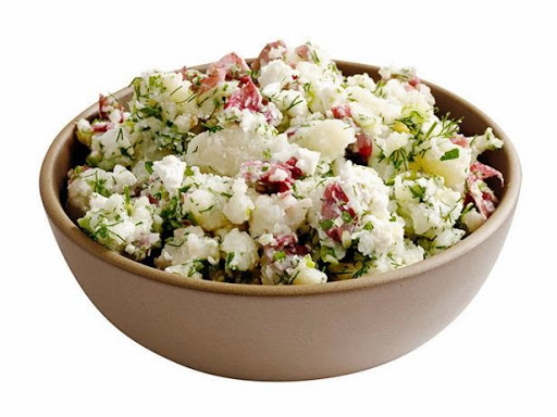 Cover potatoes with cold salted water; simmer 40 minutes. Drain, do not peel. Smash with butter, milk, cheese, herbs and salt & pepper to taste.