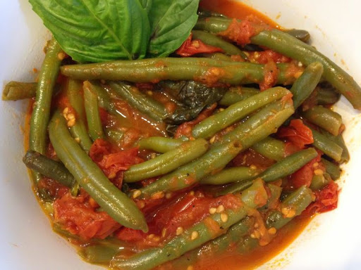 Melt the butter and oil in a heavy, large skillet over medium heat. Add the shallots and garlic and sauti until tender, about 2 minutes. Add the tomatoes and cook until heated through, about 3 minutes. Add the beans and cook until the juices evaporate and the beans are almost tender, stirring often, about 10 minutes. Stir in the wine and basil. Simmer 2 minutes longer. Season with salt and pepper, to taste. Transfer to a serving bowl and serve.