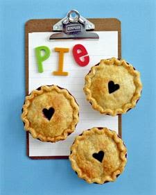 1. Unfold piecrusts on work surface. Using top of a 3-inch aluminum pie tin (see the Guide) as a template, add 1/4 inch all around and use a knife to cut out seven rounds. Make a vent in center of each round with a 1/2-inch heart-shape cutter. Set crusts aside.