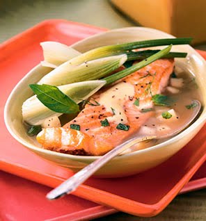 Bring broth to boil in a large pan; add fennel and cook 4 minutes. Pat salmon with 1/4 tsp oil per side, season with salt and pepper to taste and place skin side down in a frying pan. Cook on medium heat 4 minutes. Flip and cook until fish turns light pink. Remove from heat. Add parsnips to broth and cook 2 minutes. Spoon vegetables and broth into 4 bowls; place 1 fillet in each bowl and top with basil, mint, and 1 1/2 tsp aioli sauce.