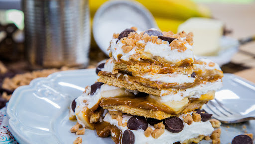 spread reduced sweetened condensed milk over pie bottom, top with bananas,