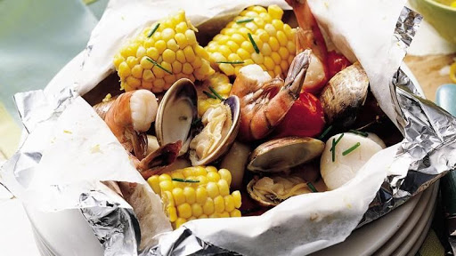 Place packets on grill over medium heat. Cover grill; cook 15 to 20 minutes, rotating packets 1/2 turn after 10 minutes, or until clam shells have opened, shrimp are pink, and scallops are white and opaque. (Cooking time may vary depending on ingredients selected) Discard any clams that don't open.