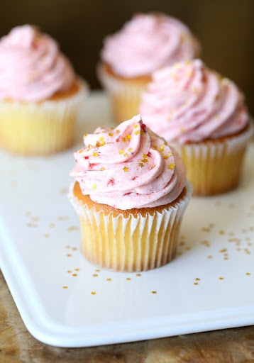 In the bowl of your stand mixer fitted with the paddle attachment beat the butter on medium speed until it's smooth. Add in the powdered sugar and mix on medium speed until it's creamy, scraping the sides of the bowl as necessary. Add in ½ cup of the strawberry puree and mix until the frosting is smooth. If you notice that your frosting appears "curdled" add in ½ cup more powdered sugar at a time until the desired consistency is reached.