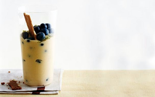 Transfer to a bowl and fold in most of blueberries, then divide among 6 glasses. Top with remaining blueberries and zest.