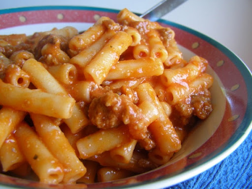 • 1 lb. cooked pasta (I used the new Barilla piccolini ziti, because of it’s closeness in shape to the traditional beefaroni noodles, but any shape would be fine.)