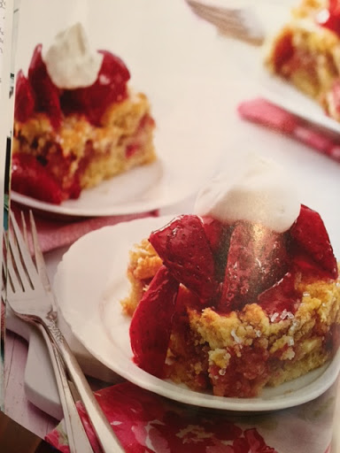 Preheat oven to 375°. Coat a 9 inch square baking pan with nonstick spray. Line pan with a 2 inch overhang of parchment paper; coat with nonstick spray. For the bars, whisk together flour, 1/4 cup sugar, baking powder and 1/2 tsp salt in a bowl. Cut butter into flour mixture using a pastry blender until butter is pea sized; stir in 1 cup diced strawberries and white chocolate. Whisk together heavy cream, egg and vanilla then add to flour mixture, blending with a fork just until dough comes together. Press half the dough onto bottom of prepared pan. Spread jam over dough, then pat remaining dough over the top, sprinkle with sparkling sugar, and bake bars until lightly golden, 35-40 minutes. Cool to room temperature, then cut into 12 bars. For the topping, puree 3/4 cup halved or quartered strawberries in a food processor. Combine 1/3 cup sugar and cornstarch in a saucepan. Stir in pureed strawberries, water and pinch of salt; bring to a boil and cook until thick, stirring constantly, about 3 minutes. Stir in food color, then remove from heat and let cool slightly; our over remaining 3 1/4 cups fresh strawberries. Let topping cool to room temperature or refrigerate until ready to serve.
