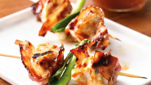 Grilled Barbecued Bacon-Chicken Skewers