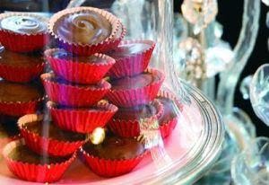 2. Spoon 1 teaspoon melted chocolate into bottom of a miniature-sized paper baking liner. Let cool. Press 1 teaspoon peanut butter mixture over chocolate, pressing to edges of liner. Spoon melted chocolate over peanut butter to cover. Let cool. Repeat procedure with remaining chocolate and peanut butter mixture.