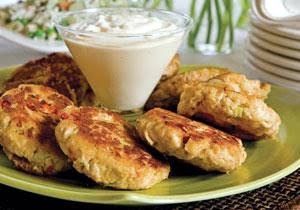 4. In a large skillet, melt remaining 2 tablespoons butter over medium heat. Cook chicken cakes, in batches, if necessary 3 to 5 minutes per side, or until browned. Serve with tangy Creole Sauce.