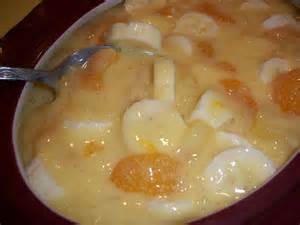 Drain canned fruit - reserving 1 cup of the liquid. Slice bananas into bite size pieces. Put all fruit into serving bowl. Whisk pudding mix and reserved cup of juice together and pour over fruit. Refrigerate several hours.