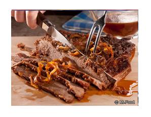 Remove the brisket from the pot; slice thinly across the grain, and serve.