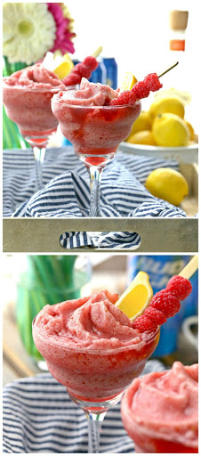 Combine raspberry puree, water, sugar, tequila, beer, lime juice, and ice in a blender and blend until well combined. Add more or less ice depending on how frozen you want your cocktail.
