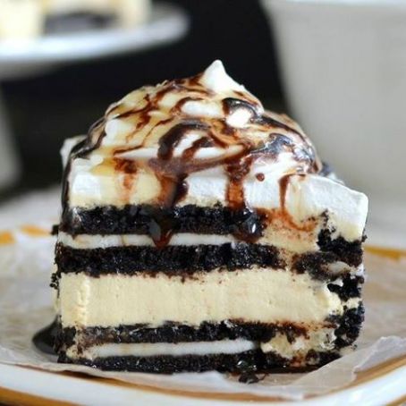 Dip 16 Oreo cookies in the cooled coffee and place in the bottom of an 8x8-inch pan. Spread half the caramel cheesecake mixture over the Oreo cookies.