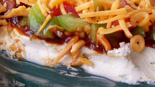 Stir together the cream cheese and ranch dressing mix in a bowl until smooth. Spread the mixture on the bottom of a pie dish. Evenly spread the barbecue sauce on top of the cream cheese mixture. Layer the bacon, bell pepper, and tomato on top of the barbecue sauce and top with the Cheddar cheese. Cover and chill for 1 hour before serving.