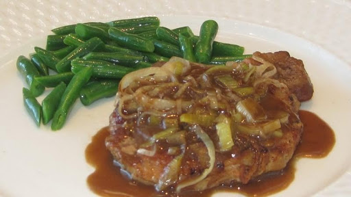 Sprinkle both sides of pork chops with salt and pepper. In same skillet, heat remaining 1 tablespoon oil over medium-high heat. Add pork; cook 5 to 6 minutes, turning once, until golden brown on each side. Spoon leeks over pork. Pour beer around pork. Heat to boiling; reduce heat to low. Cover; simmer 45 to 50 minutes or until pork is tender. Remove pork from skillet; cover to keep warm.