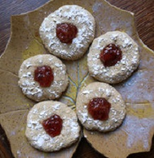 These cookies make a great substitute for fried doughnuts, also know as sufganiyah, a traditional Hanukkah treat. They are equally as festive and scrumptious, with a dollop of jam in the center. Children will love helping to make these because they are fun to mold and they are so healthy you will feel good about letting your children enjoy them. They are loaded with fiber from the luscious oats, omega-3 fatty acids from the flax seeds and coconut oil, and protein from the almond flour. You can also substitute oat flour if your guests or family members have nut allergies.