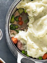 topping. Meanwhile, microwave potatoes for 10 minutes, as per package directions. Carefully transfer to a large bowl and add milk, butter, dill and salt. Mash until smooth. Dollop onto filling and gently spread to dish edges.