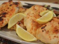 Bake in a casserole dish, uncovered, 25 to 30 minutes, basting often with remaining garlic butter. During last 5 minutes of cooking place under broiler to brown cheese. Serve garnished with lemon wedges if desired.