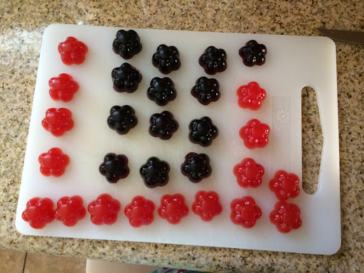 Chill for 1-2 hours and remove from pans / trays. If gummies don’t come out easily, chill for another half hour. If you used the 9×9 pan, pull out gummy in one piece by running a knife along edges. Then place on a cutting board and cut into squares of desired size.