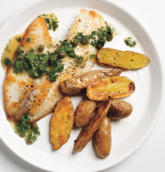 Add the wine to the skillet and cook over medium-high heat until reduced by half, 2 to 3 minutes. Remove from heat and whisk in the remaining 3 tablespoons of butter, plus the capers and parsley. Serve with the tilapia and potatoes.
