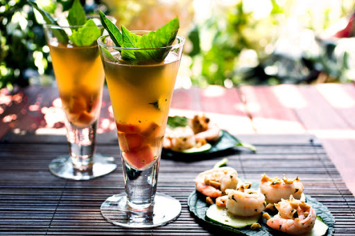 On a warm spring night, the Emperor’s Garden, a rhubarb and gin cocktail spiked with Thai basil and seasoned rice vinegar (a condiment used to make sushi rice, flavored with sugar and salt), is a perfect way to celebrate spring and also to use up some of the rhubarb you bought at the green market.