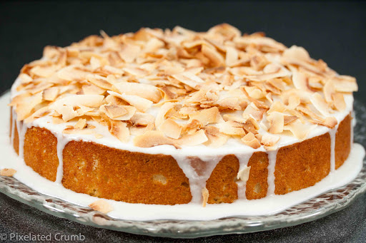 5. Whisk together powdered sugar, remaining 2 TBS lime juice and rum (if using) and pour over cake. Sprinkle with remaining coconut.