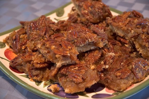 Fold in pecans and mix so they’re thoroughly coated. Then pour over hot crust.