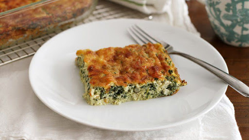 Bake 45 to 50 minutes or until cheese is melted and golden brown and egg is baked through. Serve warm.