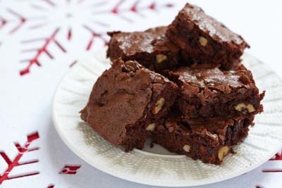 Spray the bottom and lower sides of a 6-quart slow cooker with oil. Line the bottom half with parchment paper and lightly spray it with oil. In a bowl, whisk together the flour blend, cocoa powder, baking powder, and salt; and set aside. Place butter and chopped chocolate in a medium-size heat-proof bowl over a saucepan of simmering water. Allow both to melt, stirring occasionally. Stir in the sugar and remove from heat. Remove bowl and set aside to cool. While the chocolate is cooling, beat the eggs for about 2 minutes until frothy. Slowly add the warm chocolate mixture and stir using a wooden spoon to combine. Add the water and vanilla; and stir. Add the flour mixture all at once and stir until thoroughly combined. Fold in the chocolate chips and walnuts until evenly distributed. Pour batter into the prepared slow cooker and cook on low for 8 hours or until center is no longer shiny. Remove lid and allow to cool for about 1 hour. Remove brownies using the parchment paper. Transfer to a wire rack to cool completely. Slice and serve. Cover leftovers and leave out at room temperature; or freeze individually sliced. Tips *You may substitute other brands of gluten free chocolate between bittersweet and semi-sweet. Of course, semi-sweet is slightly sweeter than bitter sweet. I just wanted to explain what I used. Ghirardelli bars have a higher fat content than Baker's chocolate.