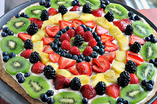 2.A) If you are making your own cookie dough, cream your butter, sugar, egg and vanilla in your mixer until its a nice fluffy pale yellow, then add your dry ingredients and mix. You can roll the dough out or just plop the blob onto an ungreased pizza pan and spread with your fingers (I did) and note, the cookie will spread during cooking so don't go too thin! Cook that crust for about 12 minutes or until golden brown. Let cool.