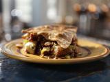 If using the single-crust method, place the meat mixture in a 10-inch pie plate and cover with the single pastry round. Trim, press the edges into the sides of the pan and cut small steam vents in the center. Brush the top of the pastry with the egg yolk and milk mixture.