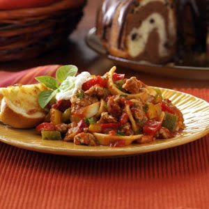 Nutrition Facts: 1-1/4 cups equals 497 calories, 21 g fat (9 g saturated fat), 141 mg cholesterol, 614 mg sodium, 43 g carbohydrate, 3 g fiber, 31 g protein.
