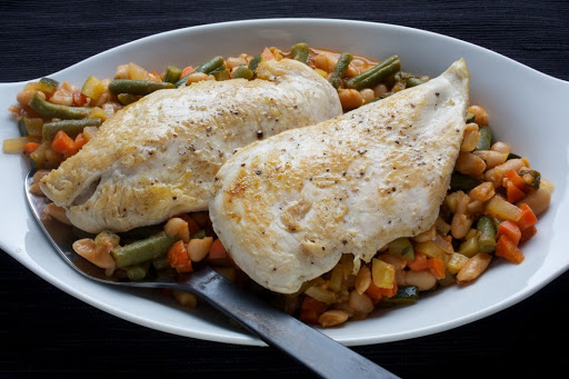- Here, tender chicken sits atop a sumptuous, herb-infused simmer of vegetables and white beans that rings with flavors of the French Mediterranean. It is made in one pan in less than 30 minutes, so it is a perfect rush-hour dinner.