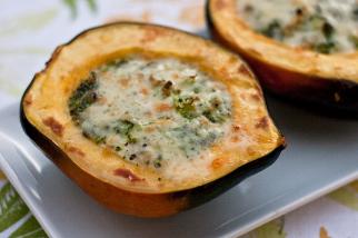 4. Place the squash in a deep baking dish, cut side up, covered in foil. Bake for about 40 minutes or until just tender.