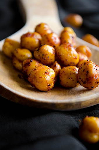 Sprinkle salt, chili and cumin and repeat the same step. Make sure they are all evenly coated with these spices.