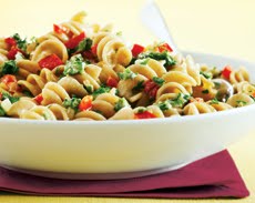 Cook pasta according to package directions; drain. Meanwhile, place the spinach in a food processor fitted with a metal blade. Pulse until coarsely chopped. Add the cottage cheese, cheddar and cornstarch. Pulse until well combined, then reserve.