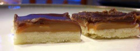 In small saucepan melt milk chocolate chips with butter and whipping cream. Drizzle over filling. Refrigerate tillFIRM, cut into bars. Store refrigerated. Take out 1/2 hour before serving.