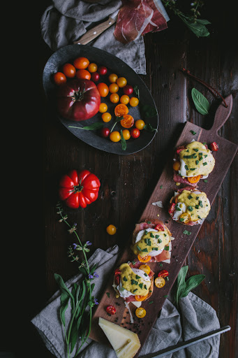 Eggs Benedict with Manchego, Tomatoes, Prosciutto & A Sage Hollandaise Sauce 1 Picture