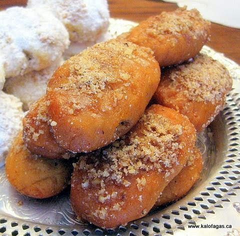 When they are cool enough to handle, dip them in the bowl of syrup for about 1 minute. Remove with a slotted spoon and place on a tray to cool. Sprinkle with the chopped almond mixture.