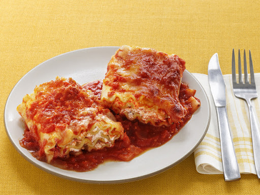 Coat the bottom of a 9-by-13-inch baking dish with a ladle or two of sauce. Spread 3 heaping tablespoonfuls of the cheese filling down the center of each lasagna sheet; roll up the sheet (but not too tightly or the filling might ooze out). Place seam-side down in the baking dish, leaving a little room between each roll. Cover with 3 to 4 cups sauce and sprinkle with the remaining 1/4 cup parmesan and 1 1/2 cups mozzarella.