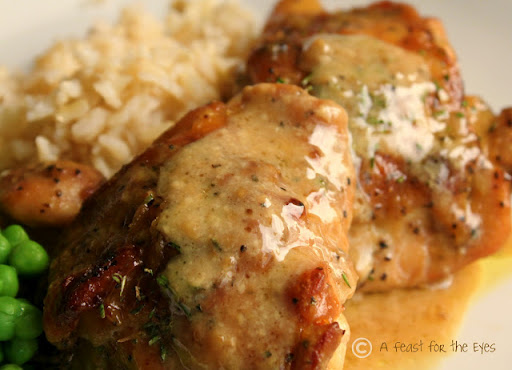 This recipe originally was posted on "Witty in the City" and went viral on Pinterest. It was adapted from the "I Love Trader Joe's" cookbook. I can see why this recipe is popular, because it's absolutely delicious! My husband, and adult son, love this dish and I've made it several times. The sauce is a savory/sweet blend of Dijon Mustard and maple syrup, with just a bit of rice wine vinegar. It comes together in minutes, and slowly bakes to a golden brown with a self-made gravy. I've slightly adapted the ratio of mustard to maple syrup, but adjust to your own taste. Go ahead! Try it! You'll love it!