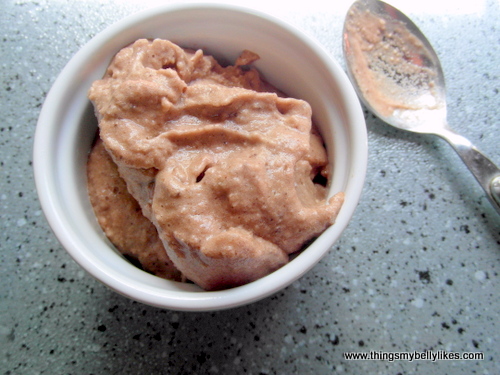 Transfer to the freezer, stir every one to two hours until it reaches the desired consistency (this took four hours overall for me). The texture will not be like ‘normal’ ice-cream, it’s more like a soft-scoop consistency.