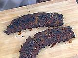 Remove the ribs from the oven and hold for grilling. Mix 1/4 cup of the bourbon with the BBQ sauce and then coat the ribs with the mixture. Place the ribs on the grill and cook for about 15 minutes. Remove from the grill and arrange on a platter. Serve with grilled corn alongside, if desired.