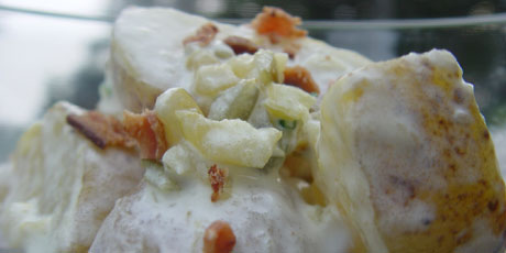 Place potatoes, bacon, celery and green onions into a large salad bowl. Add the dressing and season with salt and pepper. Toss well.