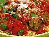 Cook spaghetti according to package directions. In a large bowl, combine beef and garlic and herb seasoning, 1 teaspoon each salt and pepper. Mix well and shape mixture into meatballs (about 16 meatballs). Add meatballs and cook 5 minutes, until golden brown on all sides. Add tomatoes, tomato paste, oregano, and red pepper flakes and bring to a simmer. Simmer 10 minutes, until meatballs are cooked through. Reserve 1 1/2 cups sauce for another meal. Remove from heat and stir in basil. Serve sauce over spaghetti. Top with Parmesan just before serving.