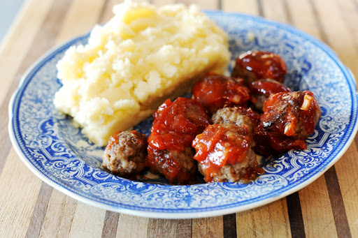 Combine all sauce ingredients. Pour over meatballs and bake at 350 degrees for 45 minutes. Serve with egg noodles, mashed potatoes, or crusty French bread.